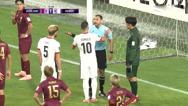 第65分钟,成都蓉城前场边线球直接掷入禁区,经过连续的争顶,韦世豪再度送入禁区,直接击中远端立柱弹出!随着时间的流逝,神户胜利船不断地做出换人调整,前场逐渐形成围攻之势。第76分钟,韦世豪禁区拿球传中,击中井手口阳介的手臂,裁判直接吹罚点球!费利佩一蹴而就,1:2!成都蓉城反超比分!